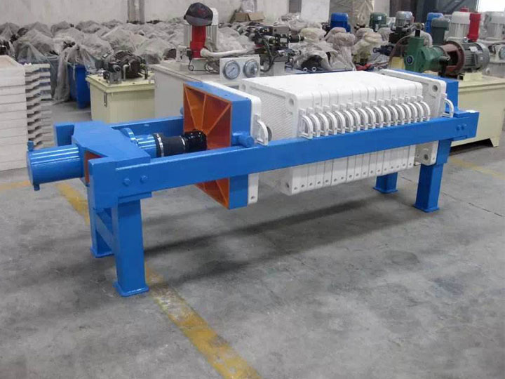 滤饼卸完后重新启动压紧系统,对压滤机进行压紧,滤板压紧后进行第二次进料操作。